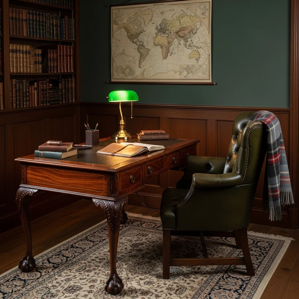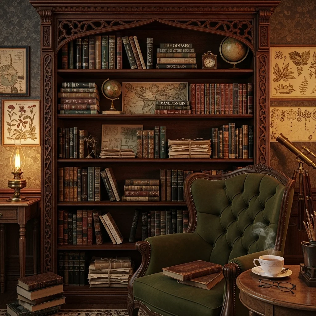 Incorporate vintage or antique furniture such as a mahogany writing desk or a tufted armchair. These pieces evoke a sense of history and intellectual depth, making your space feel like a cozy study at a centuries-old university.