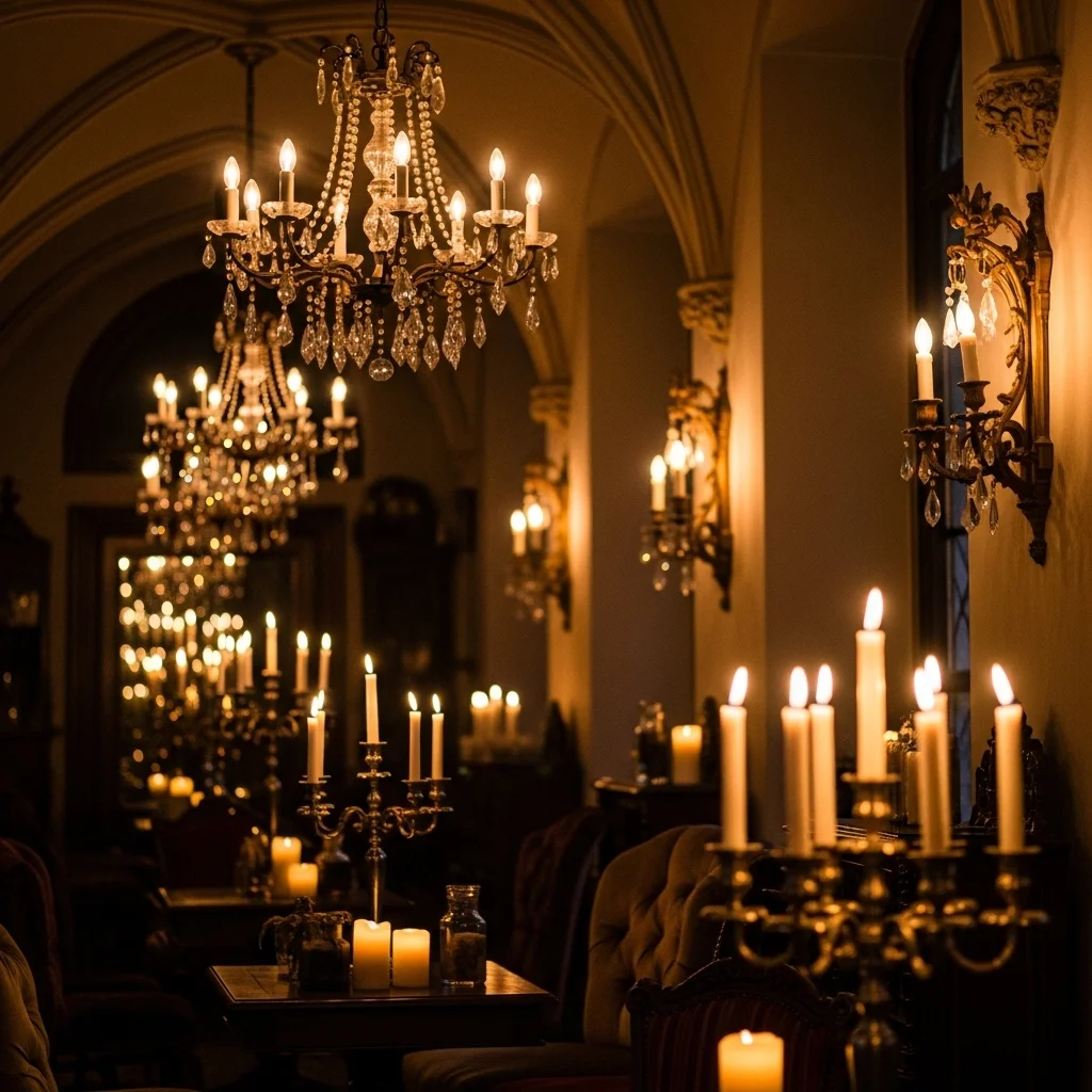 Lighting sets the stage for Gothic elegance. Embrace a warm, inviting glow through candlelight, chandeliers, and sconces. Opt for dimmable lighting to easily transition from bright functionality to romantic ambiance, enhancing the mood of your space.