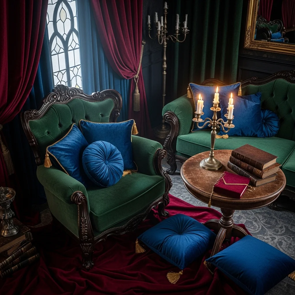 The soft yet sumptuous quality of velvet embodies the Gothic spirit. Consider plush velvet curtains, cushions, or upholstery for furniture. This tactile fabric adds depth and richness while creating a visually opulent atmosphere.
