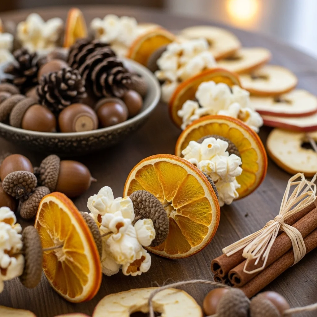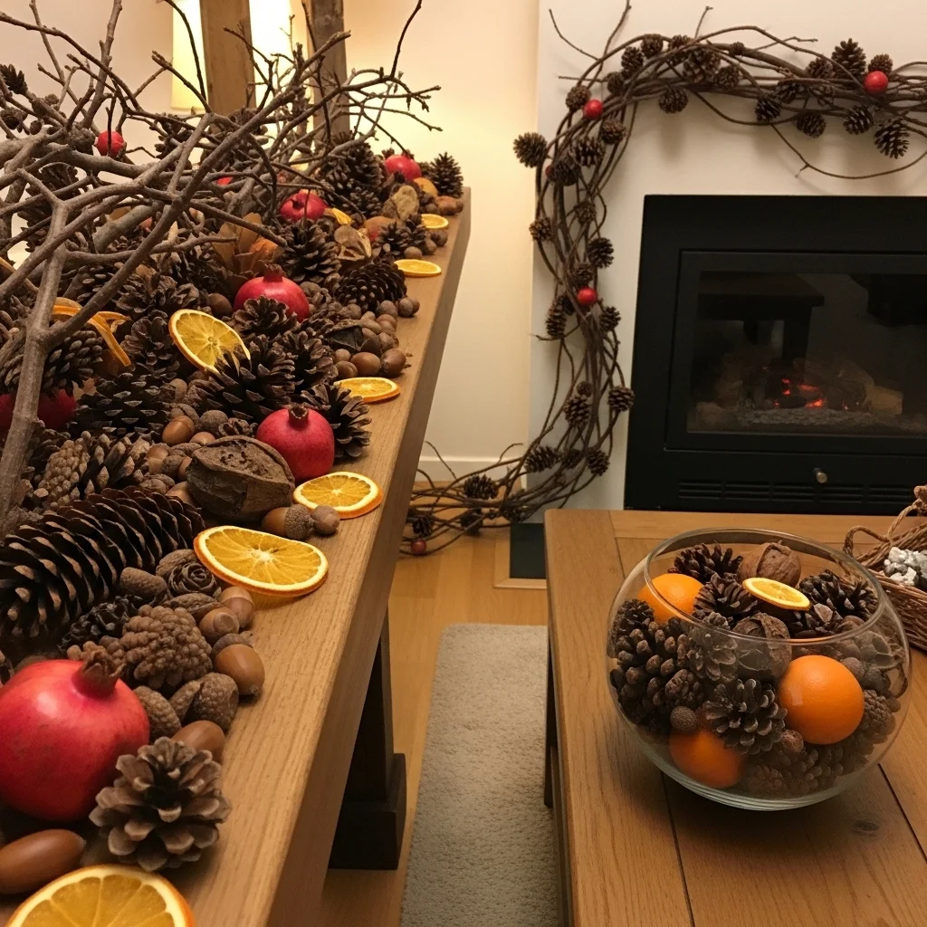 Use elements from nature to adorn your home. Pinecones, branches, acorns, and seasonal fruits like oranges and pomegranates can add a touch of rustic charm. These decorations are biodegradable and can easily be composted after the holidays.