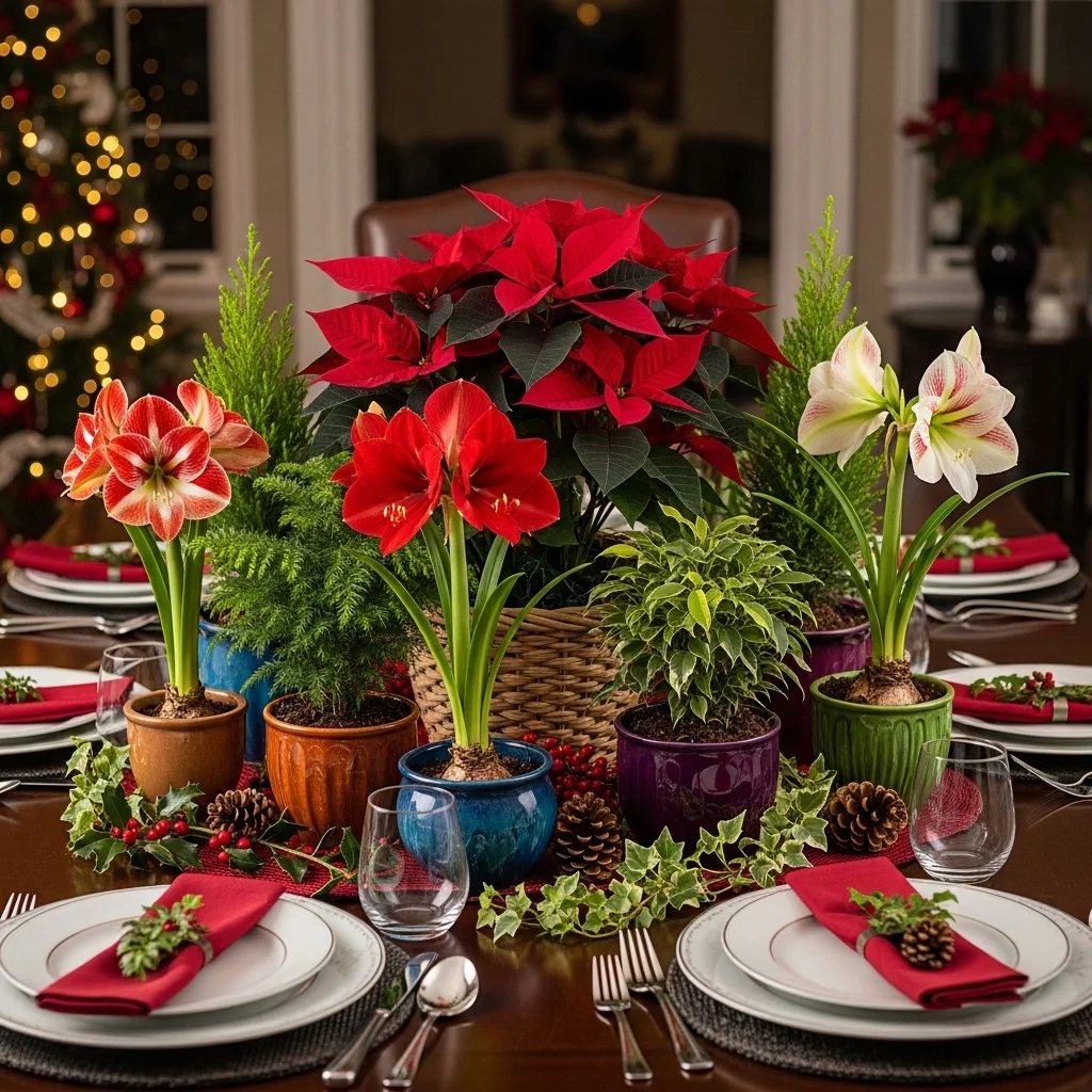 Instead of cut flowers, opt for potted plants that can be used year-round. Holiday-specific plants, such as poinsettias or amaryllis, can brighten your table and can be kept alive long after the celebrations are over.