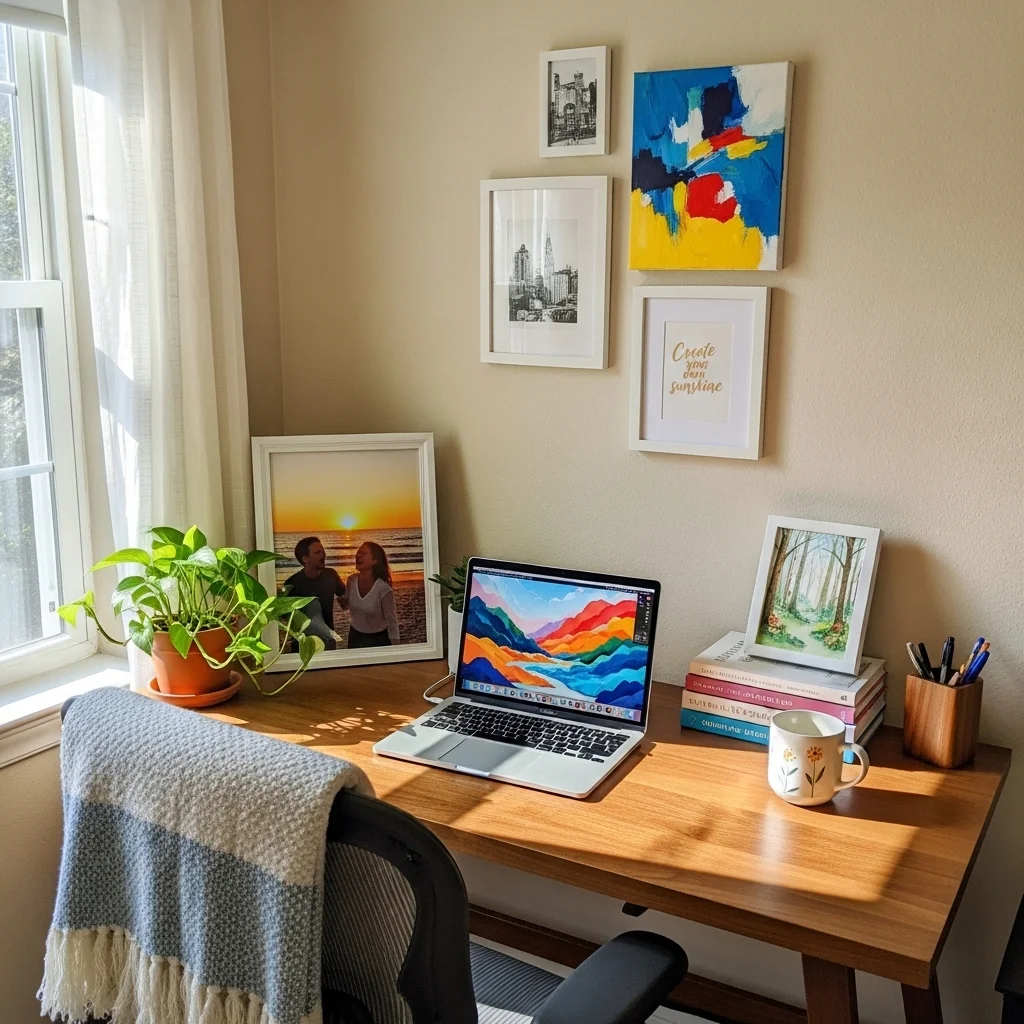 Incorporate personal items such as art, photographs, or plants to create an inviting and motivating atmosphere. Personal touches can make your workspace feel like your own, sparking creativity and positive feelings.