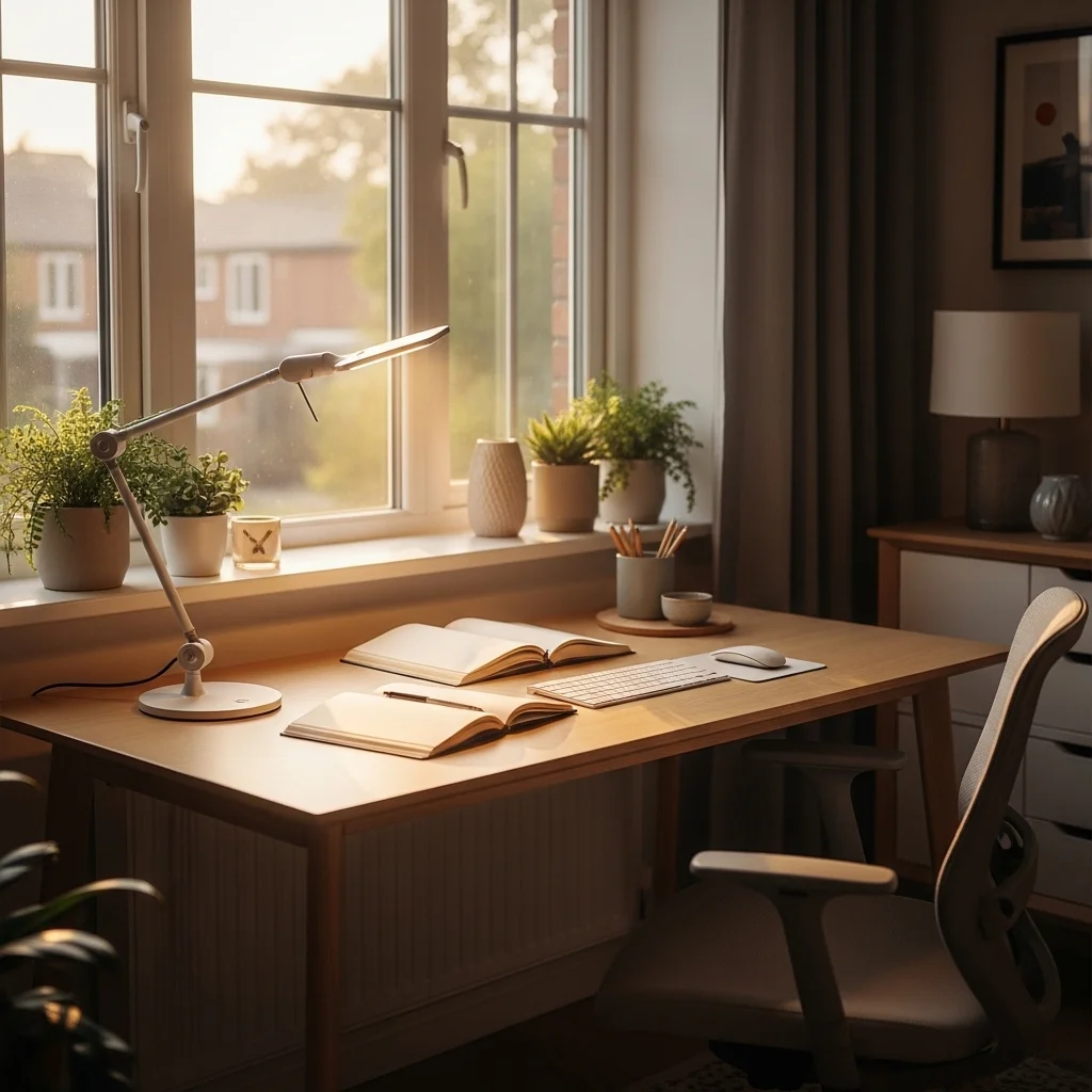 Good lighting is key to reducing eye strain and improving comfort. Position your desk near a window to take advantage of natural light, but also use adjustable task lighting to illuminate your workspace effectively.