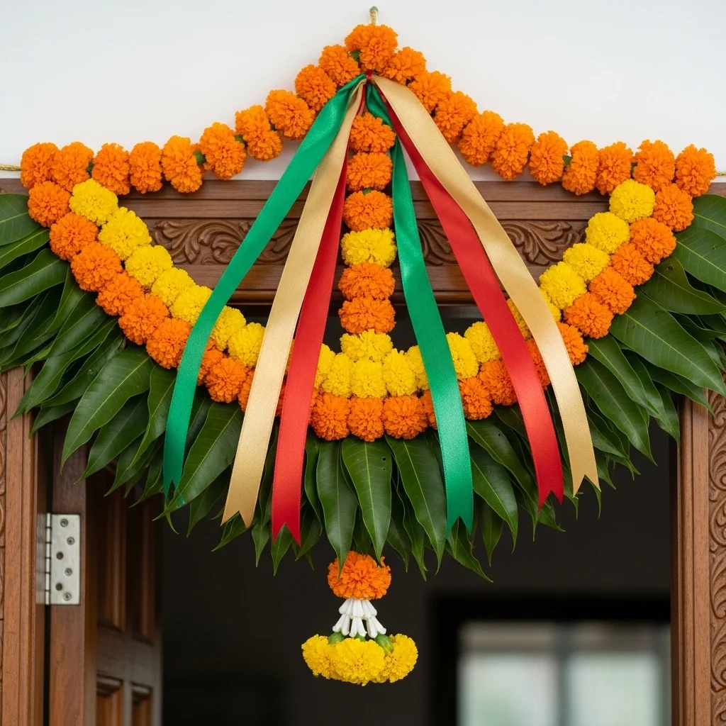 Adorn your doorways with beautifully crafted torans (door hangings). Use marigold flowers, mango leaves, or colorful ribbons to create vibrant designs. These traditional adornments not only welcome guests with festive cheer but also symbolize the auspiciousness of new beginnings.
