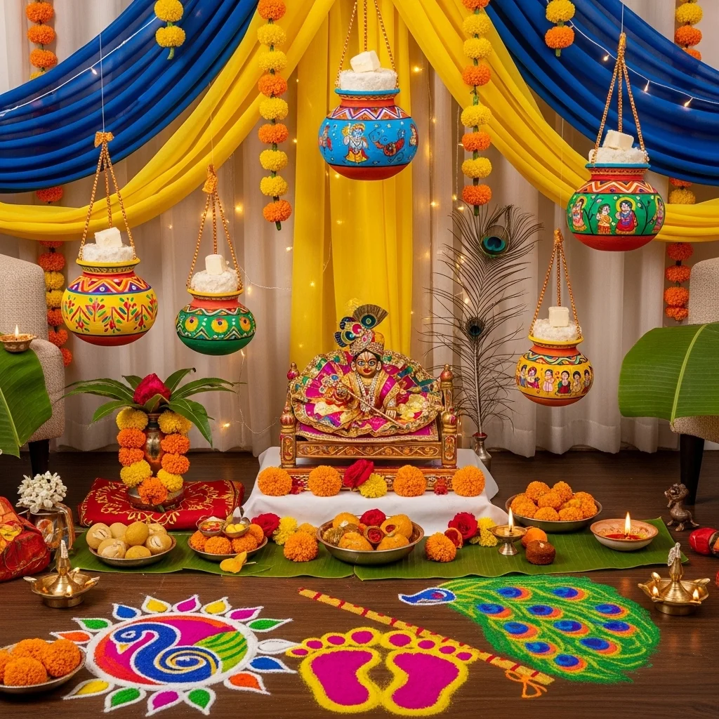 Consider adding wall hangings that represent Krishna’s life and teachings. These can be traditional tapestries or modern prints depicting Krishna’s playful and enchanting persona. They serve as both decoration and reminders of the festival’s deeper significance.