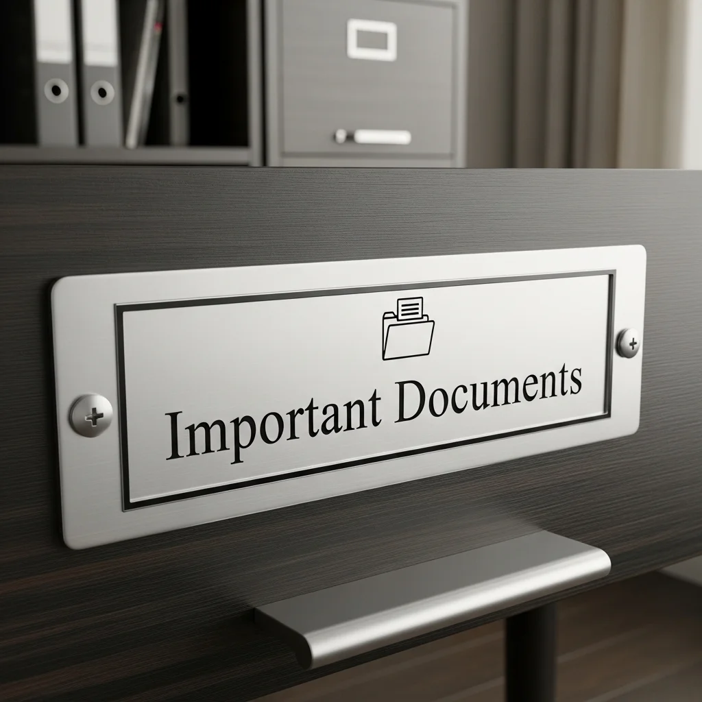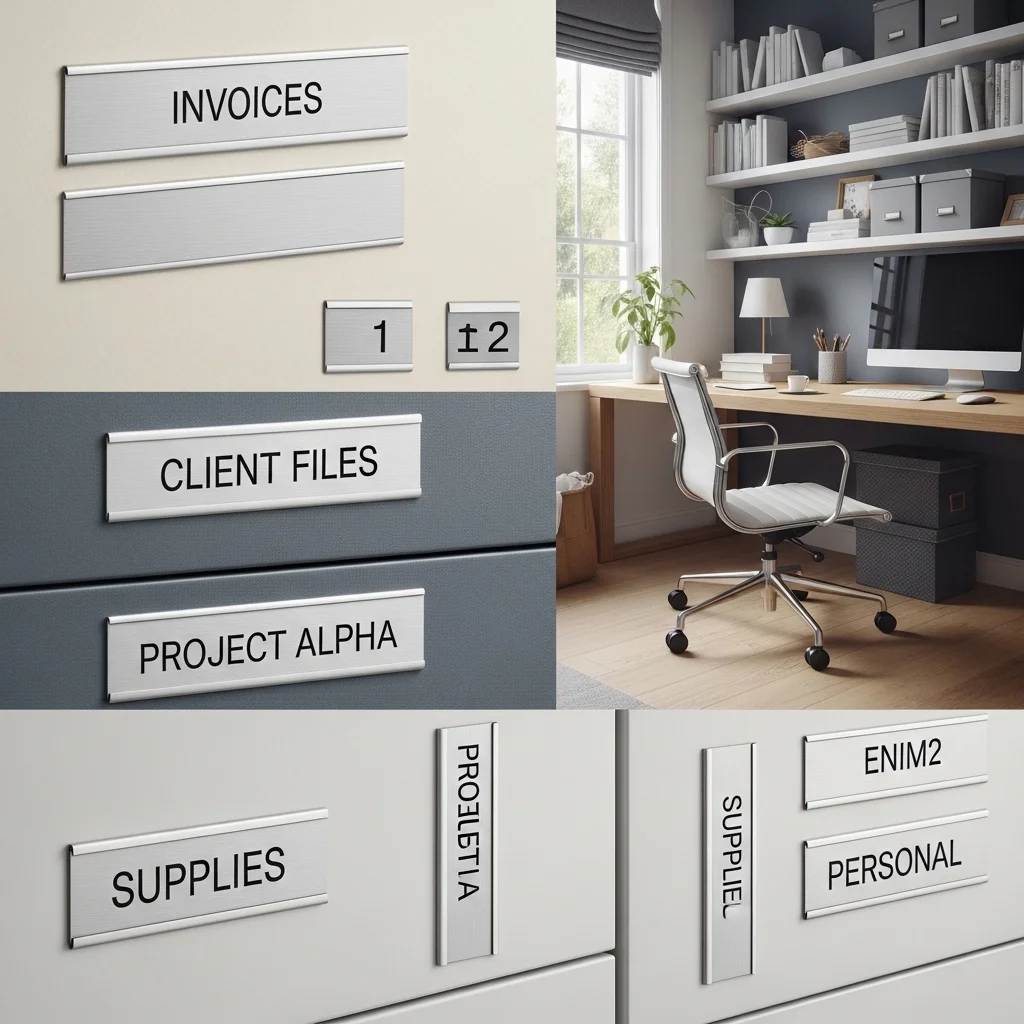 In a home office, name plates can be an excellent way to label drawers, files, and storage units. Consider a sleek, modern design to enhance professionalism while adding a touch of personalization to your workspace.