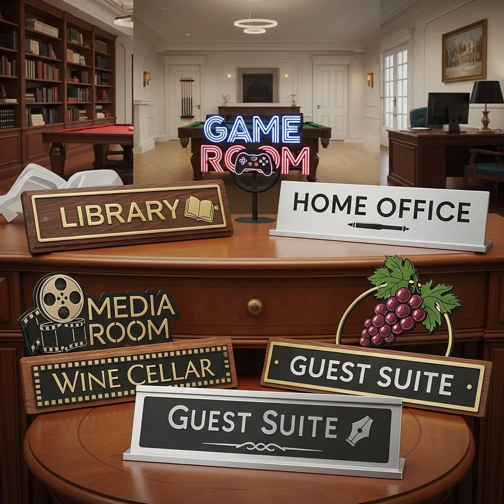 In larger homes with multiple rooms, name plates can be used to identify spaces. Whether you’re labeling a “Library,” “Game Room,” or “Home Office,” these identifiers add a sense of organization and fun. Opt for stylish designs that mirror your overall decor theme.