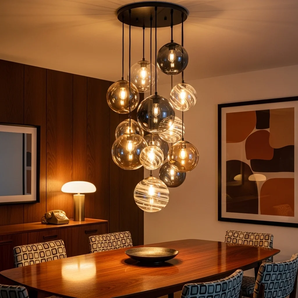 Hanging glass globe lights are reminiscent of the 70s and 80s. These fixtures can come in various colors and sizes, giving you the flexibility to create a retro look. Use them in clusters over a dining table or as solo statement pieces in an entryway.