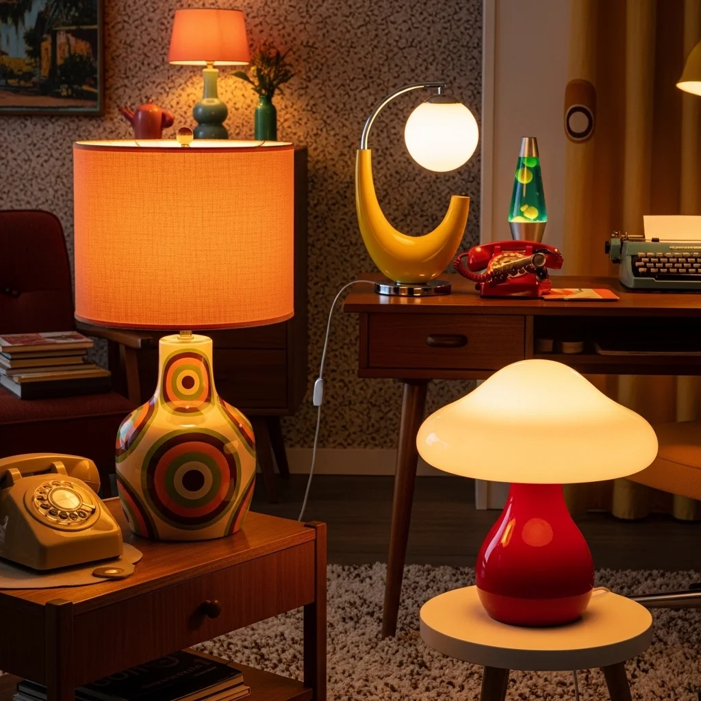 Table lamps in unique shapes and vibrant colors define retro design. Whether you find ceramic bases with quirky patterns or sleek metal finishes, these lamps can spice up side tables or workspaces, marrying form and function in delightful ways.