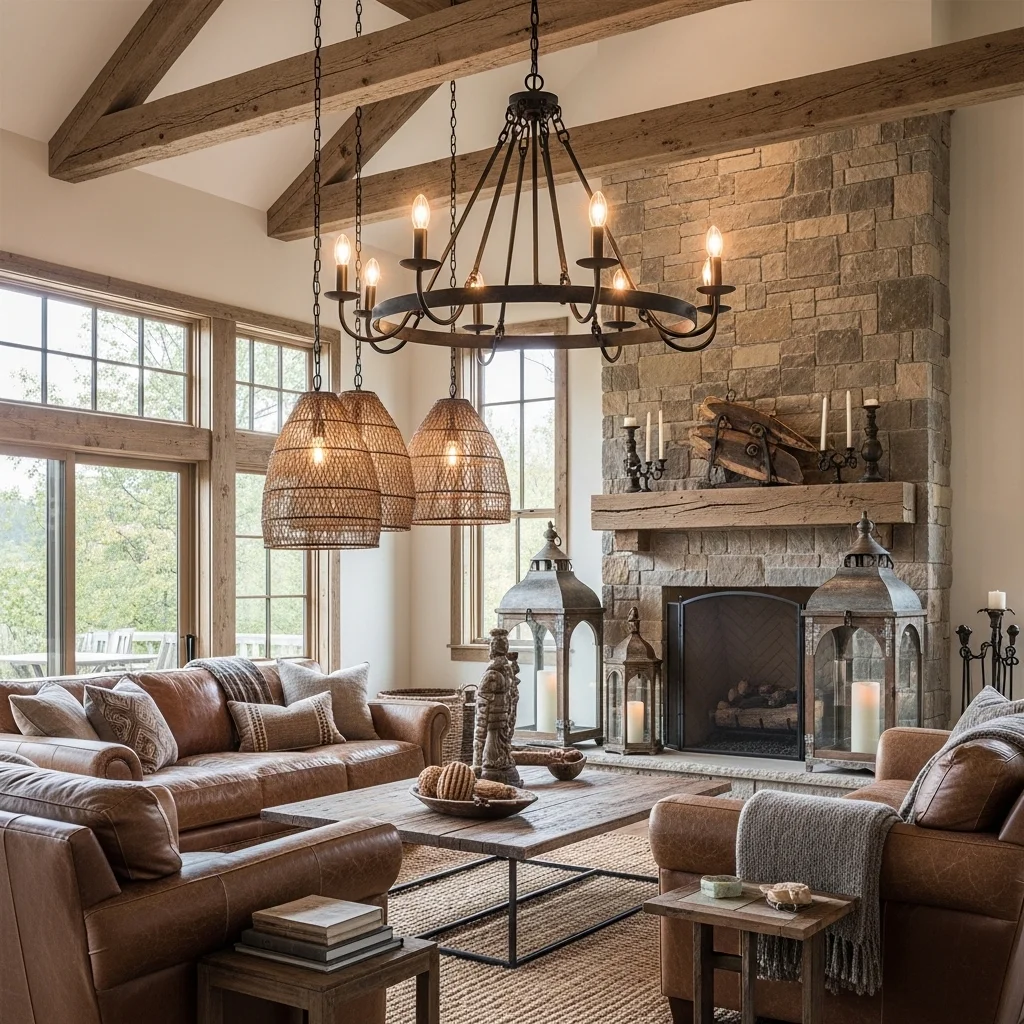 Lighting plays a crucial role in setting the mood for your rustic chic space. Consider statement fixtures like wrought iron chandeliers, lanterns, or unique pendant lights. The right lighting can illuminate your rustic features and add a touch of elegance.