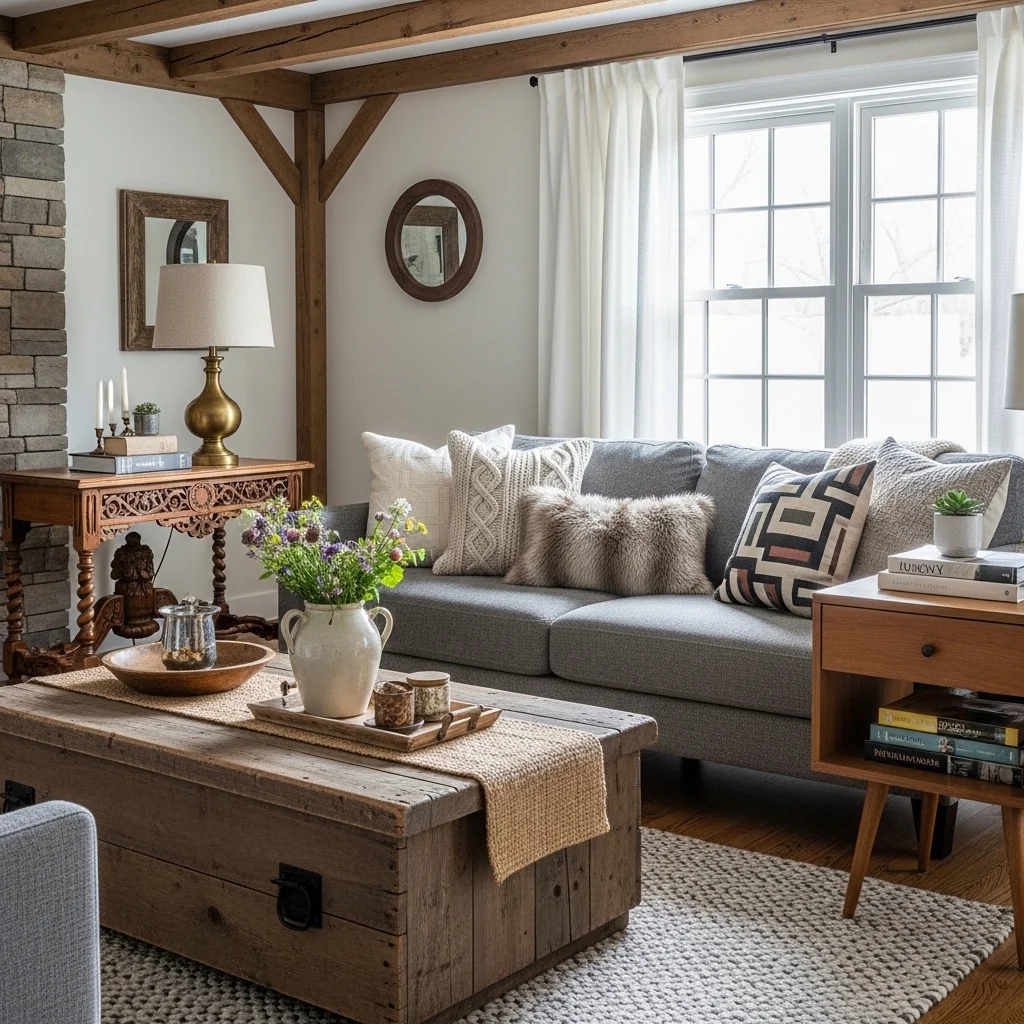 A hallmark of rustic chic style is the art of mixing and matching. Combine different styles, finishes, and textures to create an eclectic look. For example, pair your modern couch with vintage side tables or a farmhouse-style coffee table for a balanced aesthetic.