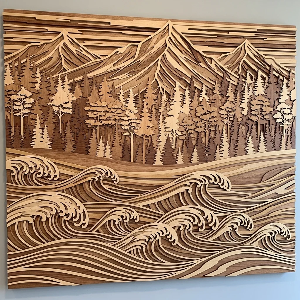 Transform your walls with large-scale wood art that depicts serene landscapes—mountains, forests, or even waves. These pieces can evoke a sense of calm and connection to the great outdoors.