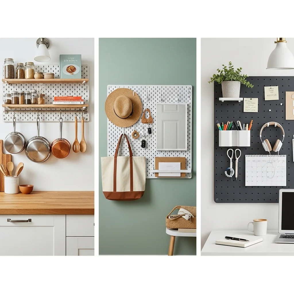 Install a pegboard in places like the kitchen, entryway, or home office. They can hold everything from pots and pans to office supplies, allowing you to keep essential items visible and easily accessible.