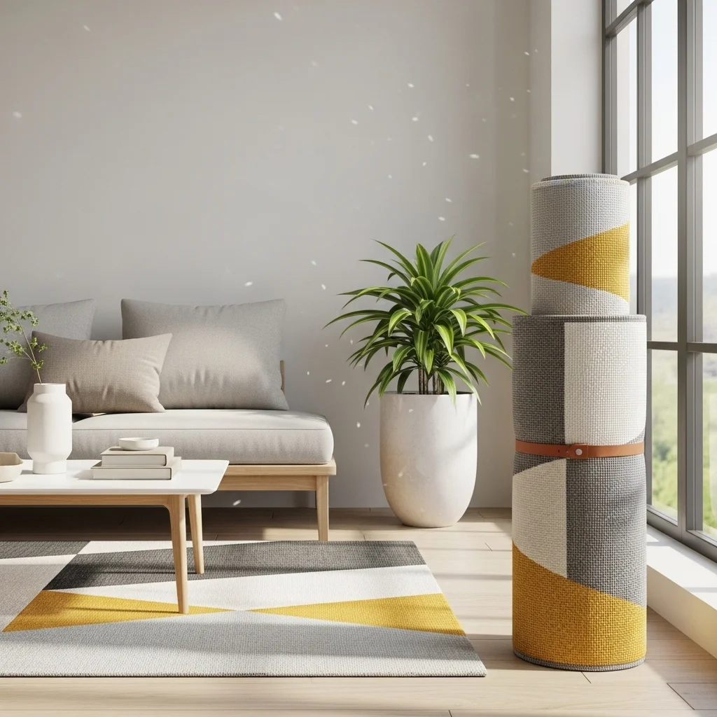 Consider using foldable or knotless rugs that can be easily rolled up and stored away. They provide comfort and style when in use and can be effortlessly stored to maintain an open space.
