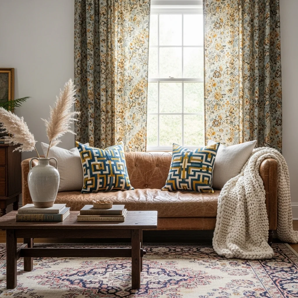 Playing with patterns and textures can enhance the eclectic vibe of your interior. Layer patterned textiles, such as a floral antique curtain alongside graphic modern pillows, or mix leather with soft fabrics. The key is to ensure patterns share a common color to maintain harmony.