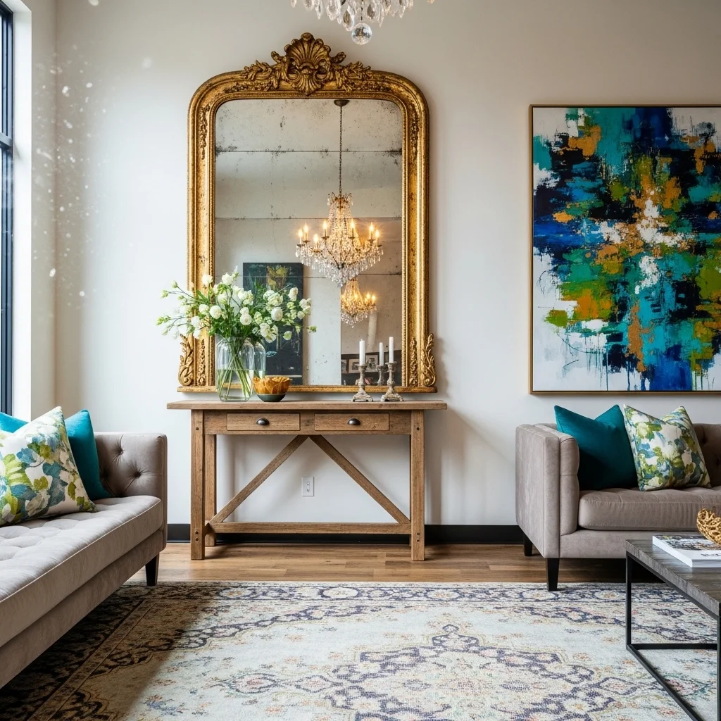 Identify a focal point in your space, such as a large vintage mirror, an ornate chandelier, or a bold piece of art. This focal point anchors the room and serves as a visual bridge, connecting various decor styles through shared themes or colors.