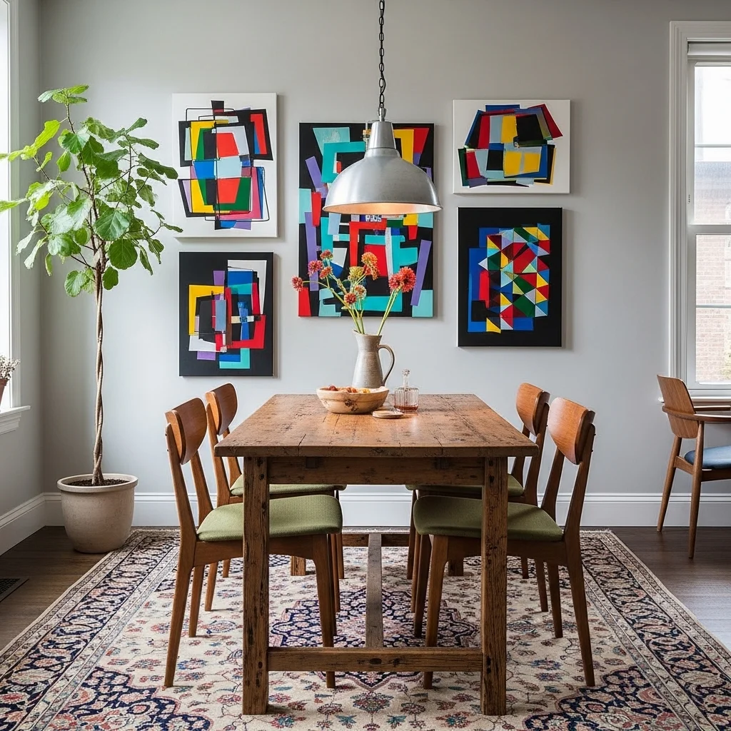 Don’t shy away from contrasting styles, materials, and textures. Pair sleek mid-century modern chairs with a rustic farmhouse dining table, or juxtapose a vintage rug with contemporary artwork. The contrast can create visual interest and often sparks conversation.