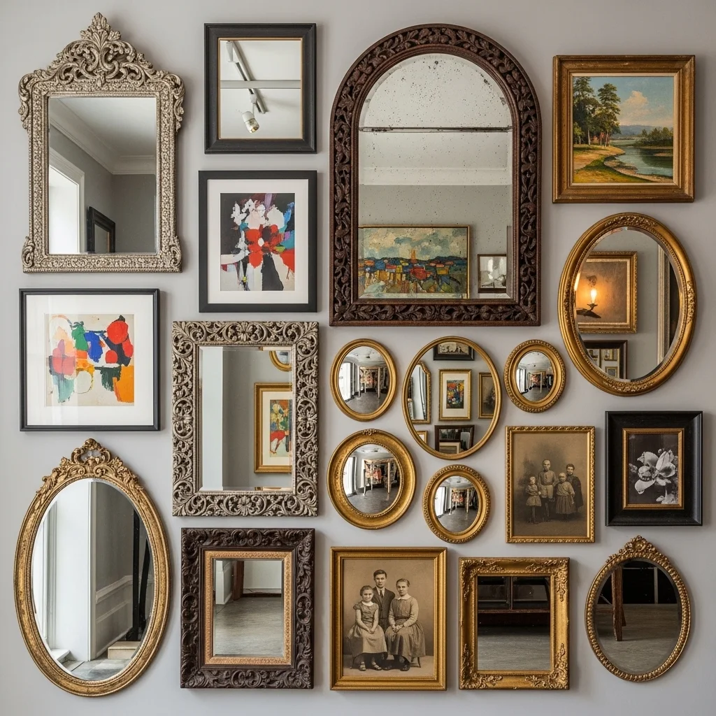 Create a stunning gallery wall by combining various vintage mirrors with artwork and photographs. Mixing shapes, sizes, and frames can add depth and dimension, making the wall an enticing focal point in your room. Vintage mirrors in ornate frames or eclectic styles can contrast beautifully with modern art pieces.