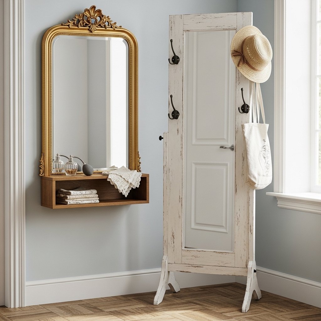 Choose vintage mirrors that serve dual purposes. For instance, a mirror with a shelf or a standing mirror with hooks can be functional yet stylish additions to a space. These pieces help maintain the room’s organization while adding a touch of character.