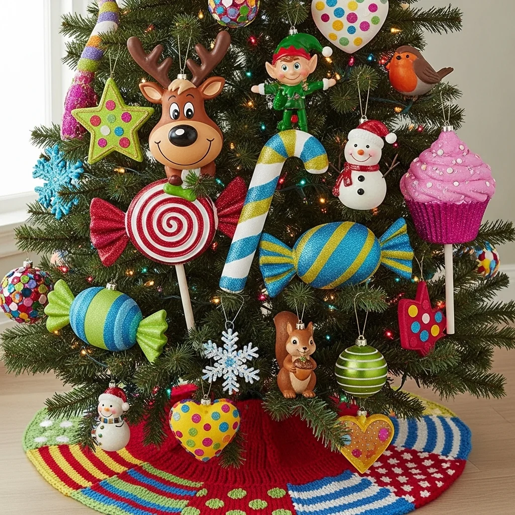 Bring a sense of playful magic to your Christmas tree with whimsical decor. Opt for quirky ornaments such as cartoon characters, oversized candies, or playful animal figurines. Bright colors, fun shapes, and mismatched patterns can evoke childlike wonder, making your tree a delight for all ages.