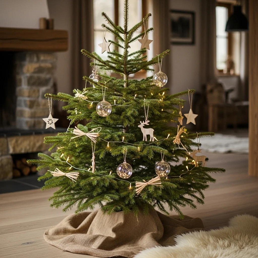 If you prefer a more understated approach, consider a rustic minimalist tree. Choose a few well-selected ornaments made from wood or glass, combined with natural materials like twine and straw. A simple tree skirt made from burlap or sheepskin can complete the aesthetic, allowing the tree’s natural beauty to shine.